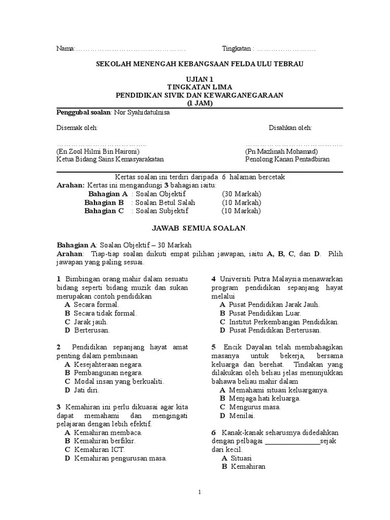 Latihan Pendidikan Sivik Tingkatan 4 / Rph Sivik Pdf